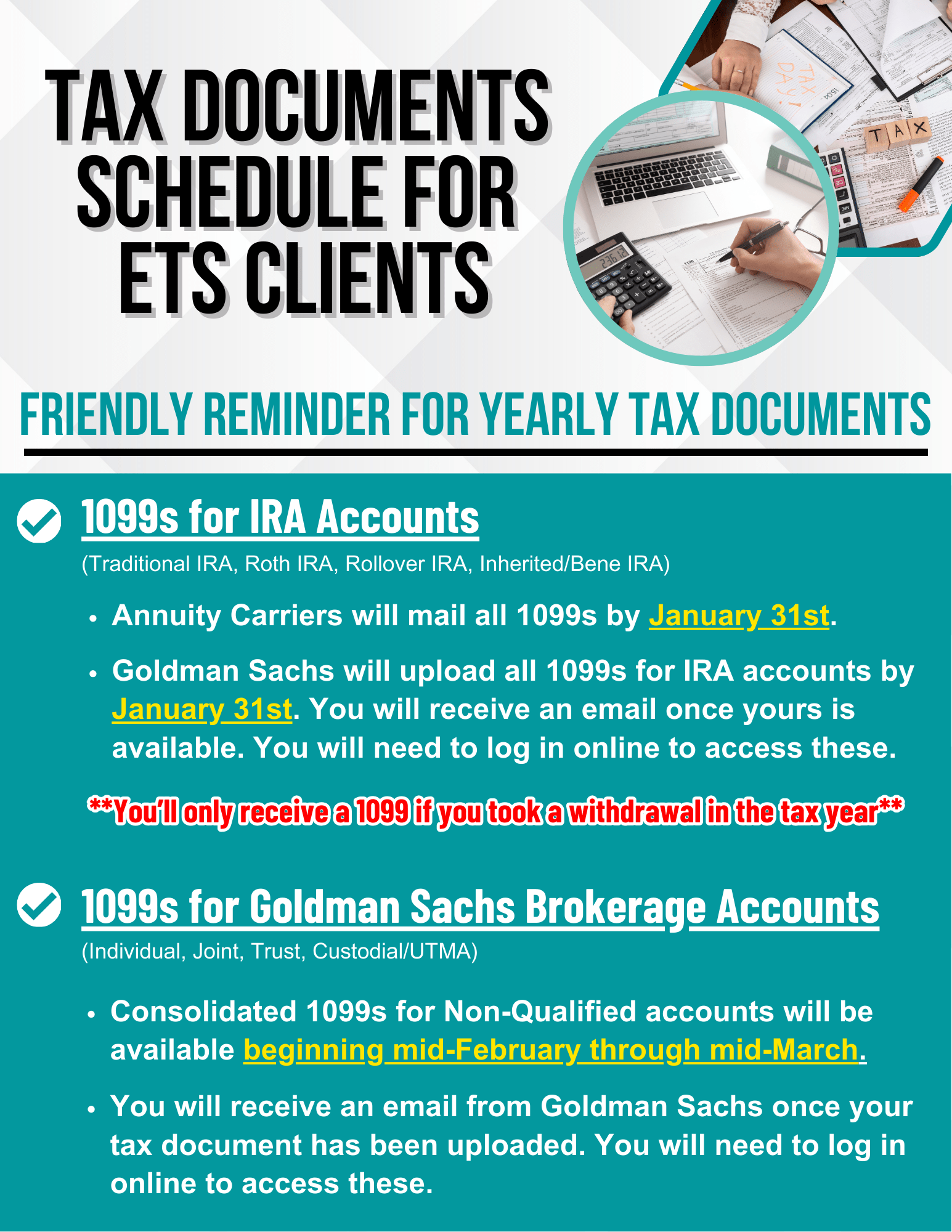 At ETS Wealth Management, our goal is to help clients realize their financial dreams by offering strategies through an open and transparent process. As fiduciaries, our advisors are legally obligated to put our clients’ interests ahead of our own.
